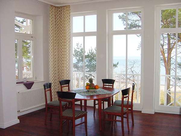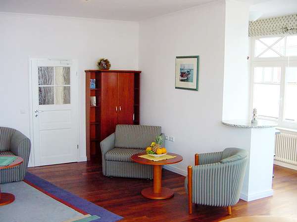 Unsere 3-Zimmer-Wohnung im 1. Obergeschoss (Fahrstuhl vorhanden) bietet Ihnen auf 95 m² einen großzügigen Wohn- und Essbereich mit Ausziehcouch, einen Küchenbereich mit Spülmaschine, Mikrowelle und Raclettegrill, zwei separate Schlafzimmer, Badezimmer, separates 2. WC, Wintergarten sowie Süd- und Seeseitenbalkon.